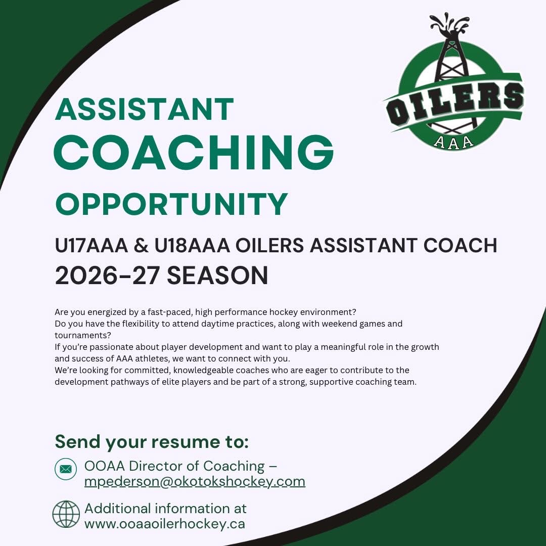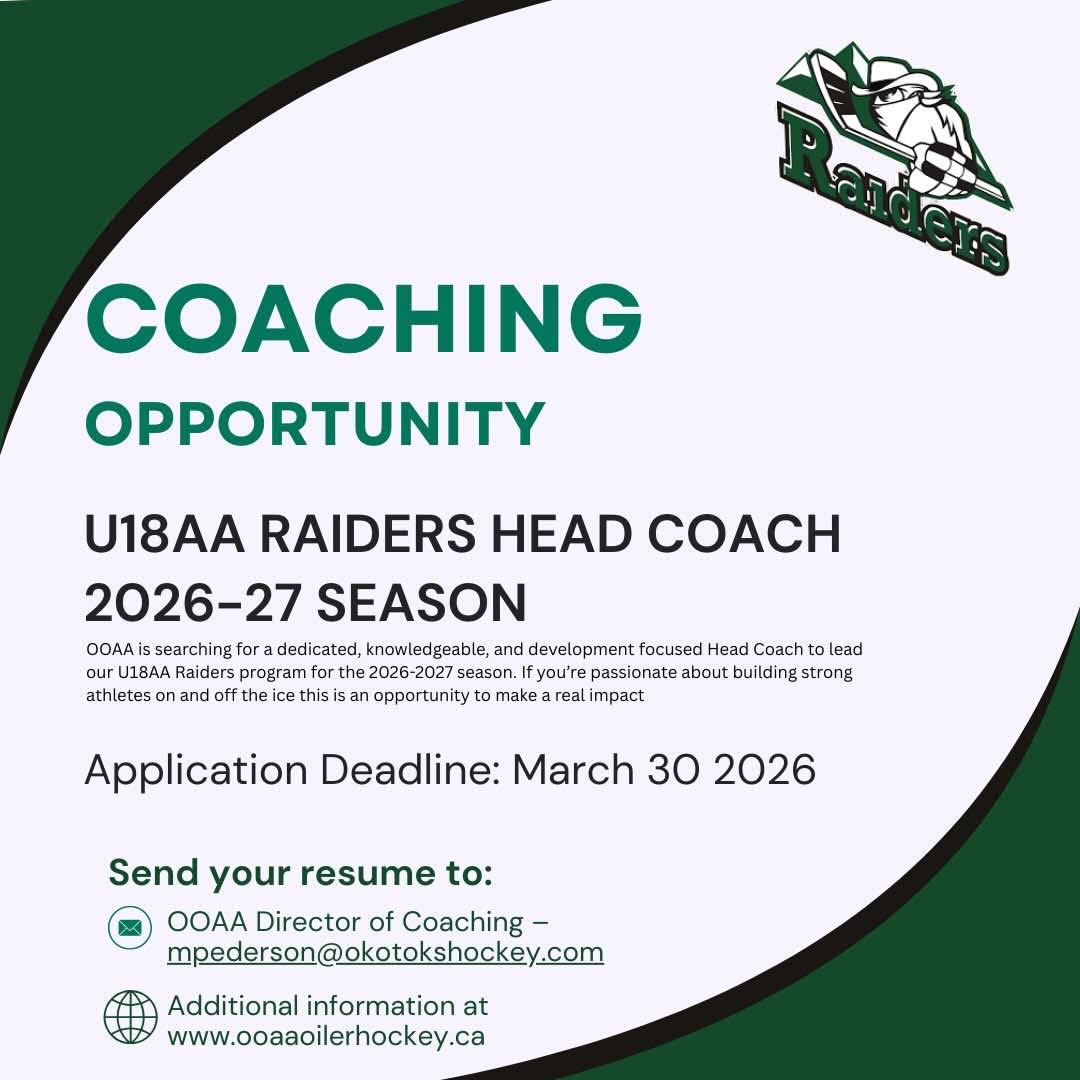The Okotoks Oilers Athletic Association (OOAA) is now accepting applications for the position of the Head Coach listed below, for the 2026/2026 Season.