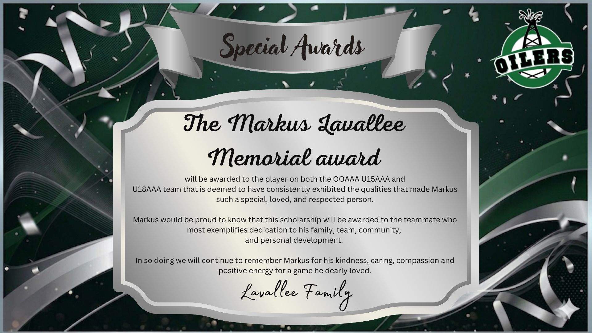 | Team | Top Scorer | MVP | Top Defenceman | Most Improved | Oiler | Raider | Markus Lavallee | Bow Mark |